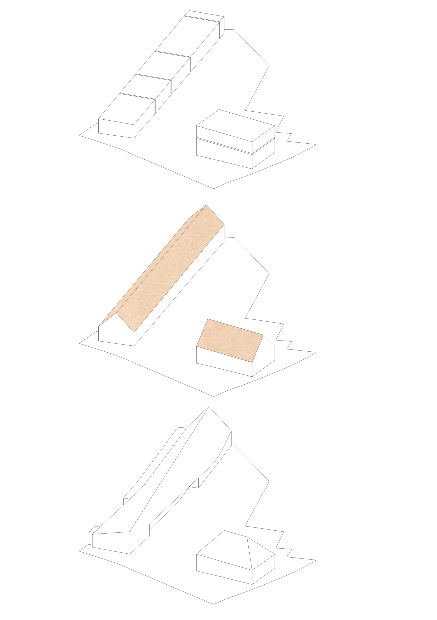 The Agora colonnade is conceived as a roof that transforms itself based on the rooms underneath, in a smooth transition, from the garage to the main hall. The basic volume leans on the neighbouring wall and opens towards the open space. The logic of the program and the construction phasing, together with the plot limit and the surrounding architecture, configurate the basic shape of the new building.
