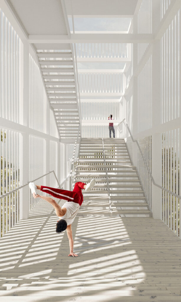 Stair to the Sky in Malešické Park aims to balance the goals of the competition. The design features a striking yet easily recognizable form, serving as a beacon within the park landscape. An archetypal shape that resonate with visitors, the structure establishes an immediate connection, inviting exploration and engagement.
